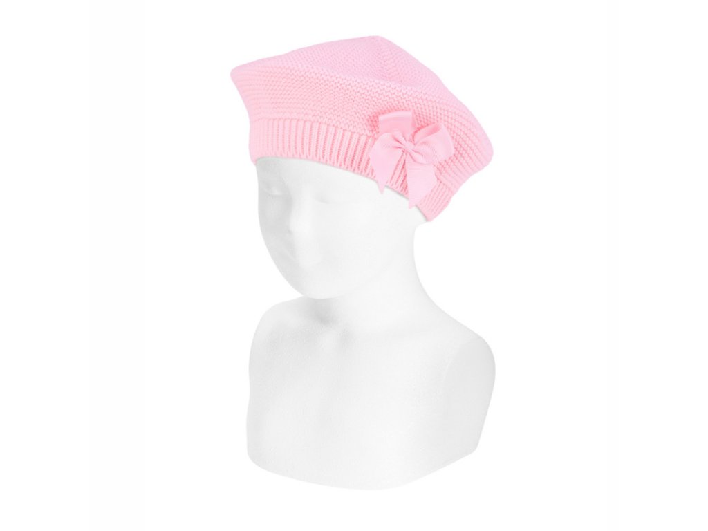 Elegantní baret s mašlí v jemném růžovém odstínu od španělské značky Cóndor.
