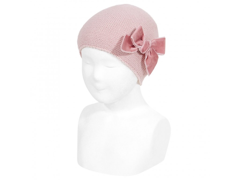 Condor čepice s velvet mašlí růžová