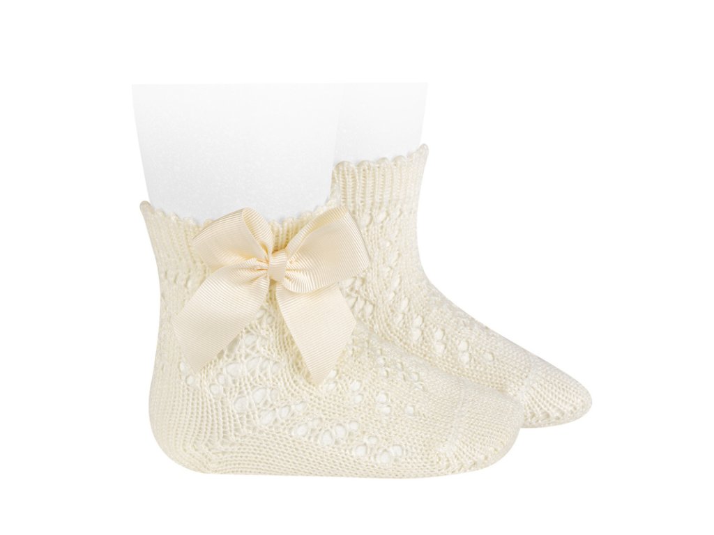 Condor háčkované ponožky s mašlí světle béžové