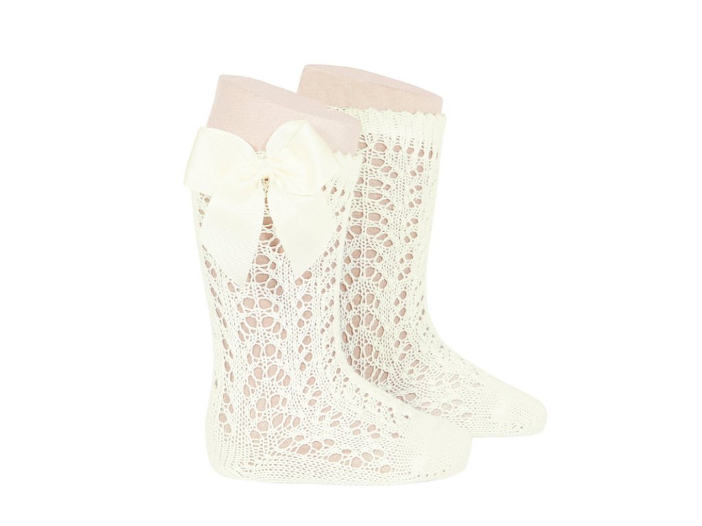 Háčkované podkolenky s mašlí oživí každý outfit.