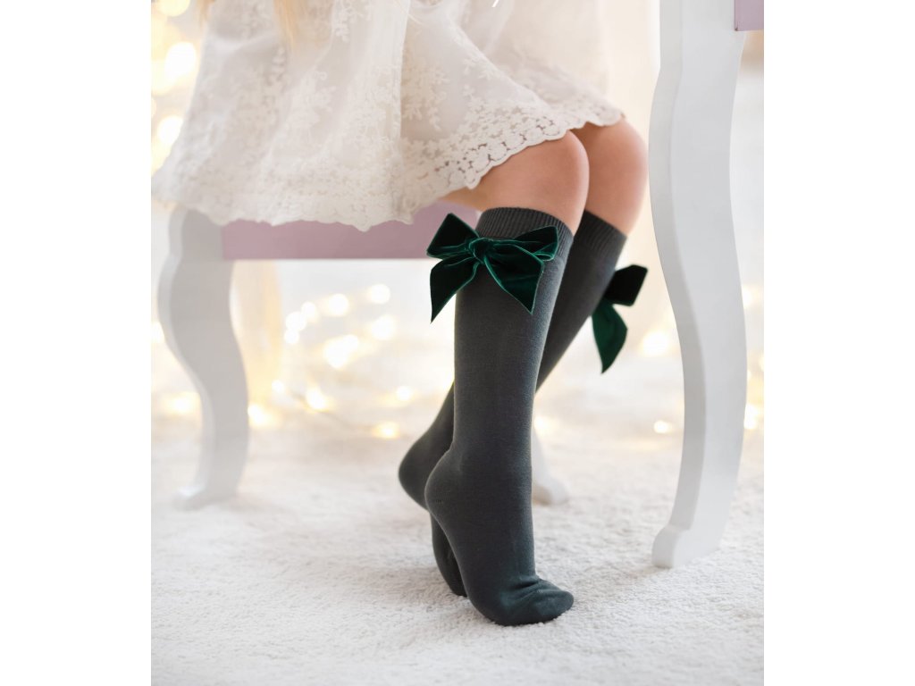 Condor podkolenky s velvet mašlí zelené